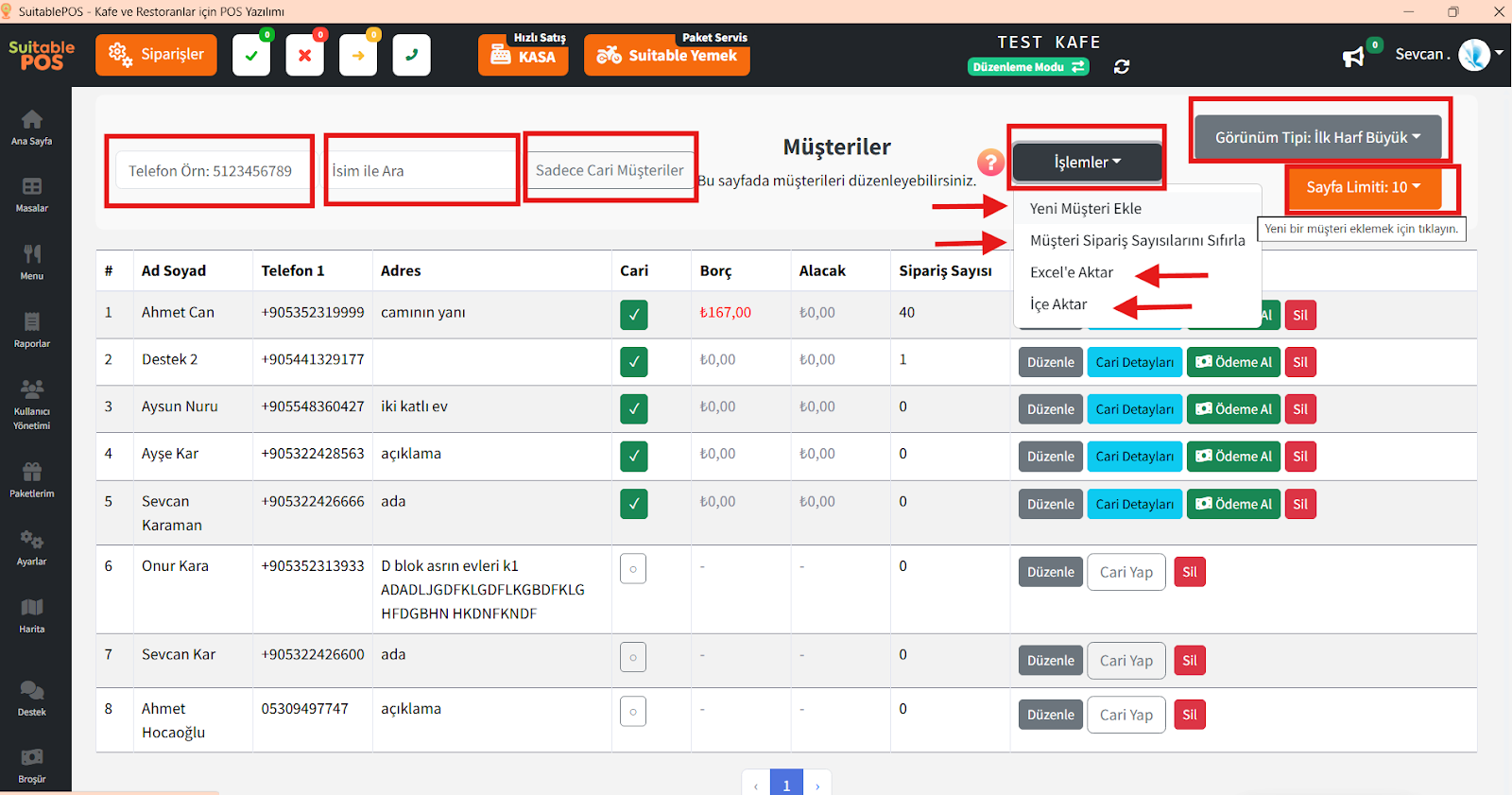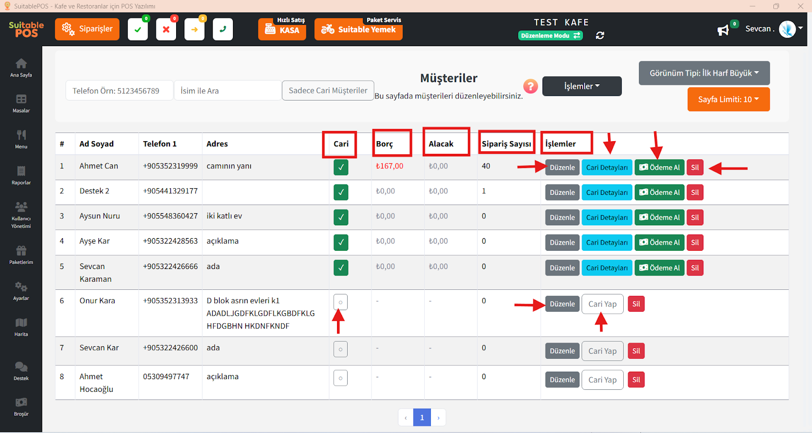 2-Düzenleme Modu: Sipariş almayı yönetebileceğiniz bir seçenektir.